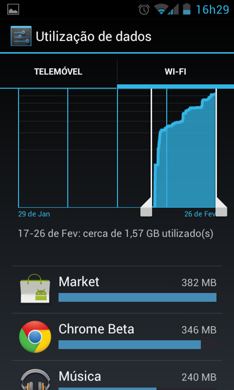 E, para os fãs das estatísticas, saber por exemplo os consumos em determinado intervalo de tempo. Saber por exemplo que, nos últimos 10 dias, o meu telemóvel consumiu cerca de 1,6 GB de dados, média de ~160 MB / dia, tendo o Market, o Chrome, o Google Music, o Airdroid, o Youtube e o Kindle se destacaram. For science.
